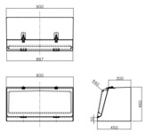 FRP工具箱はハンドレーアップ工法で製作しているので製品の仕上り寸法に関しては、±3mm~5mmの交差を見ています。 製品重量につきましても、±0.5kg~1.0kgの誤差が生じますのでご理解のほどお願いいたします。