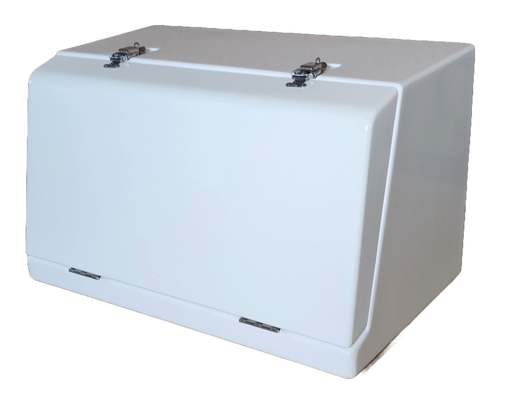 FRP工具箱はハンドレーアップ工法で製作しているので製品の仕上り寸法に関しては、±3mm~5mmの交差を見ています。 製品重量につきましても、±0.5kg~1.0kgの誤差が生じますのでご理解のほどお願いいたします。